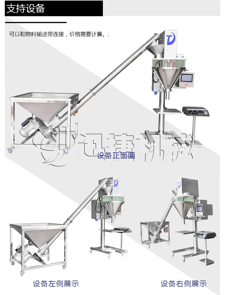 該定量包裝機主要適用于各種袋裝計量的粉類產品,例如鋁箔袋、塑料袋、紙袋、布袋、廣口瓶等類產品進行合理安全的定量包裝,是農藥、獸藥、預混料、添加劑、奶粉、淀粉、調味品、酶制劑、飼料等粉劑狀產品定量包裝的選擇,而且與物料接觸部件采用優(yōu)質不銹鋼材料制作,易于清理清洗,對物料的物理、化學性能無影響,更加方便生產企業(yè)的使用。