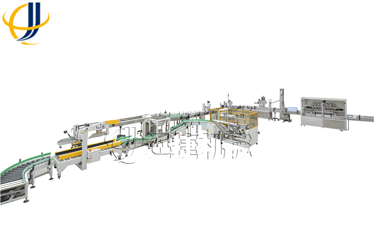 全套油脂灌裝設備是指從物料提煉出油脂往后的包裝灌裝生產過程,全套主要包括灌裝機-上蓋機-旋蓋機-貼標打碼機-裝箱機-碼垛機。其中所有的機器設備都可選配以及根據客戶場地大小來定做,這無疑對一些準備購買全套油脂灌裝設備但場地不夠大的客戶帶來了希望。比如對于場地不夠大的客戶,我們機器可以根據產量大小來定做雙排灌裝設備,節省空間但不影響生產效率。